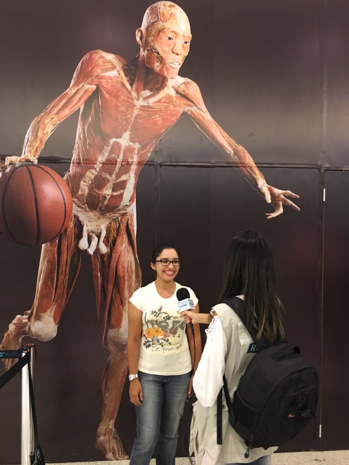 Empolgados, os graduandos mantiveram os olhos vidrados nas peças da exposição. A técnica apresentada aos visitantes, é a de Plastinação de corpos. Procedimento no qual, visa a preservação da matéria biológica disseminada pelo cientista: Gunther Von Hagens em 1977.