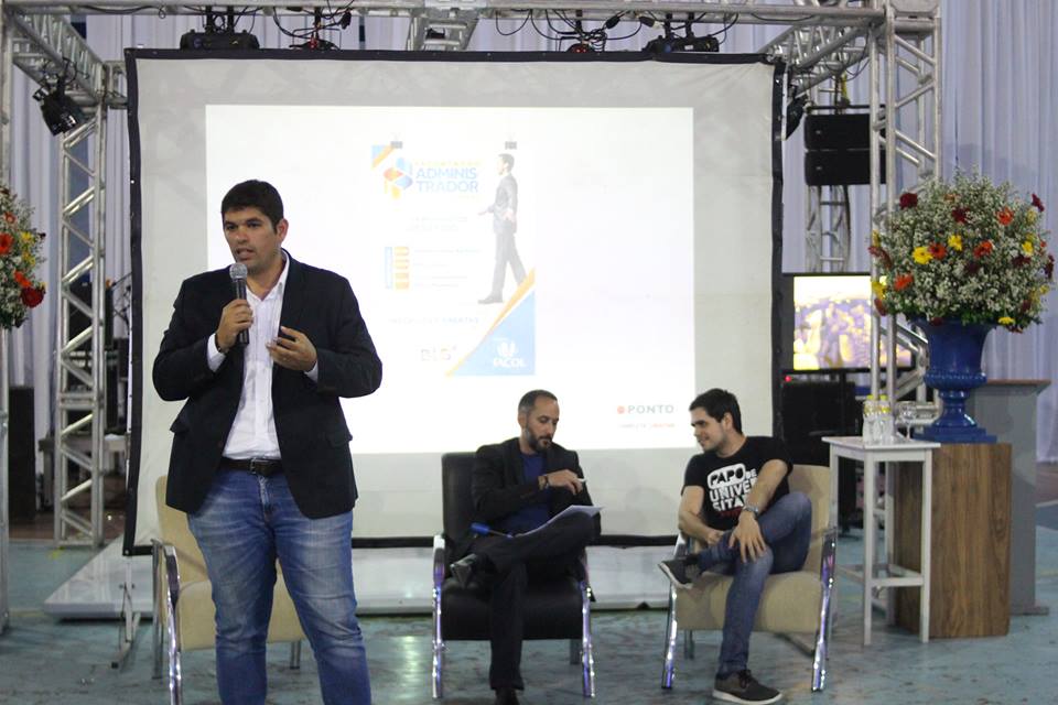 Após três dias de sucesso, o Encontro do Administrador foi encerrado nesta sexta (15) com uma programação especial. O Bate-Papo Empreendedor, com a participação de Flávio Vasconcelos, sócio do Papo Universitário, e Pedro Monteiro, sócio do Merkadão Souza, abordou o “Empreendedorismo em Momentos de Desafios”. Encerrando o evento e a exposição de stands de empresas parceiras, houve sorteios de brindes e a apresentação da banda Laboratório 6.