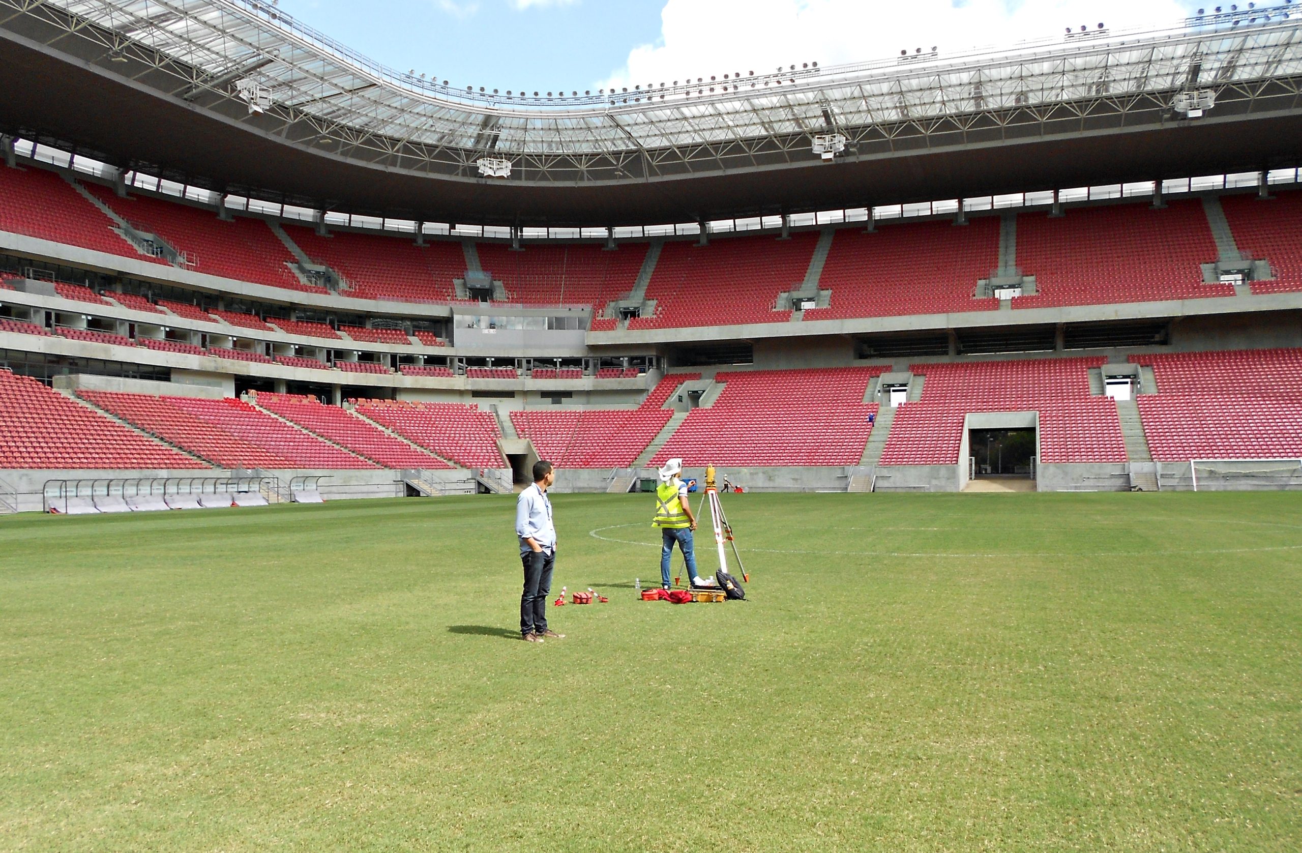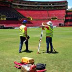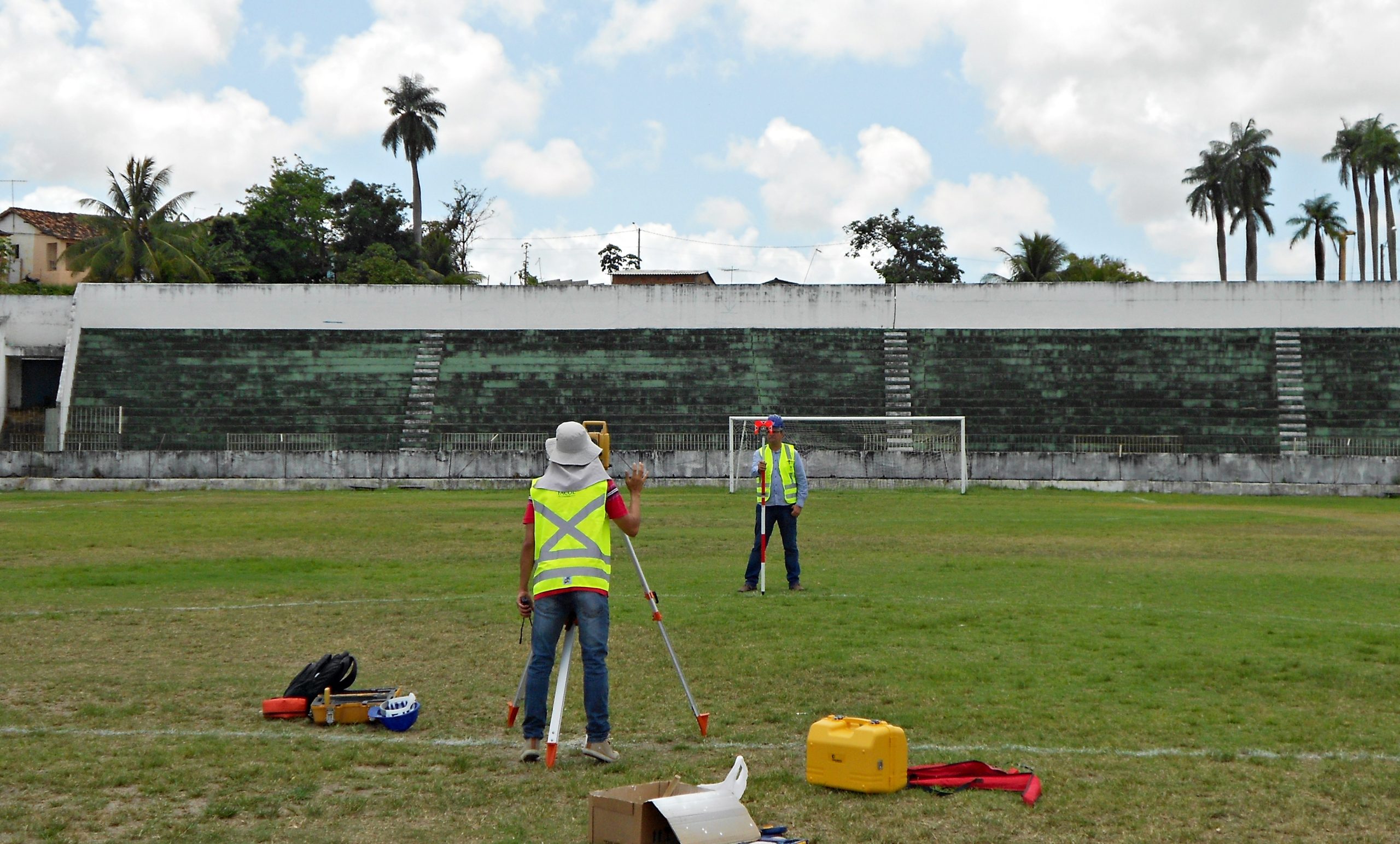 As informações bases já foram entregues e serviram para os clubes conseguirem a liberação dos laudos de avaliação. “Checamos as principais medidas do campo. O comprimento estabelecido é de 105 metros por 68 de largura. As submedidas da grande área, os raios do círculo central, a distância do ponto de marcação do pênalti e todas as linhas brancas do estádios foram verificadas e georreferenciadas”, revelou o português Sérgio, que além de engenheiro civil, é coordenador do curso de Engenharia Civil da FACOL.