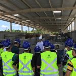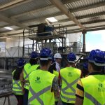 Os discentes participaram de um bate-papo com o Engenheiro de Minas da empresa, que tratou de questões sobre a indústria, os processos de produção dos agregados graúdos e os procedimentos de segurança a serem tomados. Em seguida, os alunos puderam visualizar a prática em campo. Todo o processo de produção do agregado graúdo, em diferentes diâmetros, foi apresentado aos visitantes. Desde a extração da pedra bruta, até o carregamento das carretas. Também foram detalhados os ensaios realizados para o controle de qualidade.