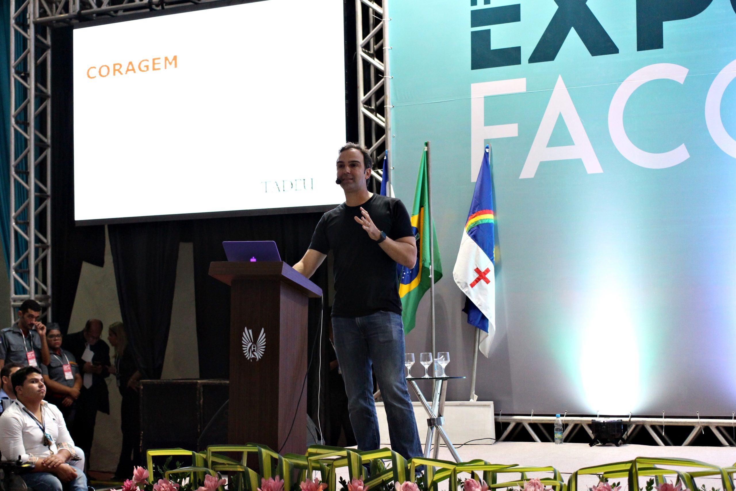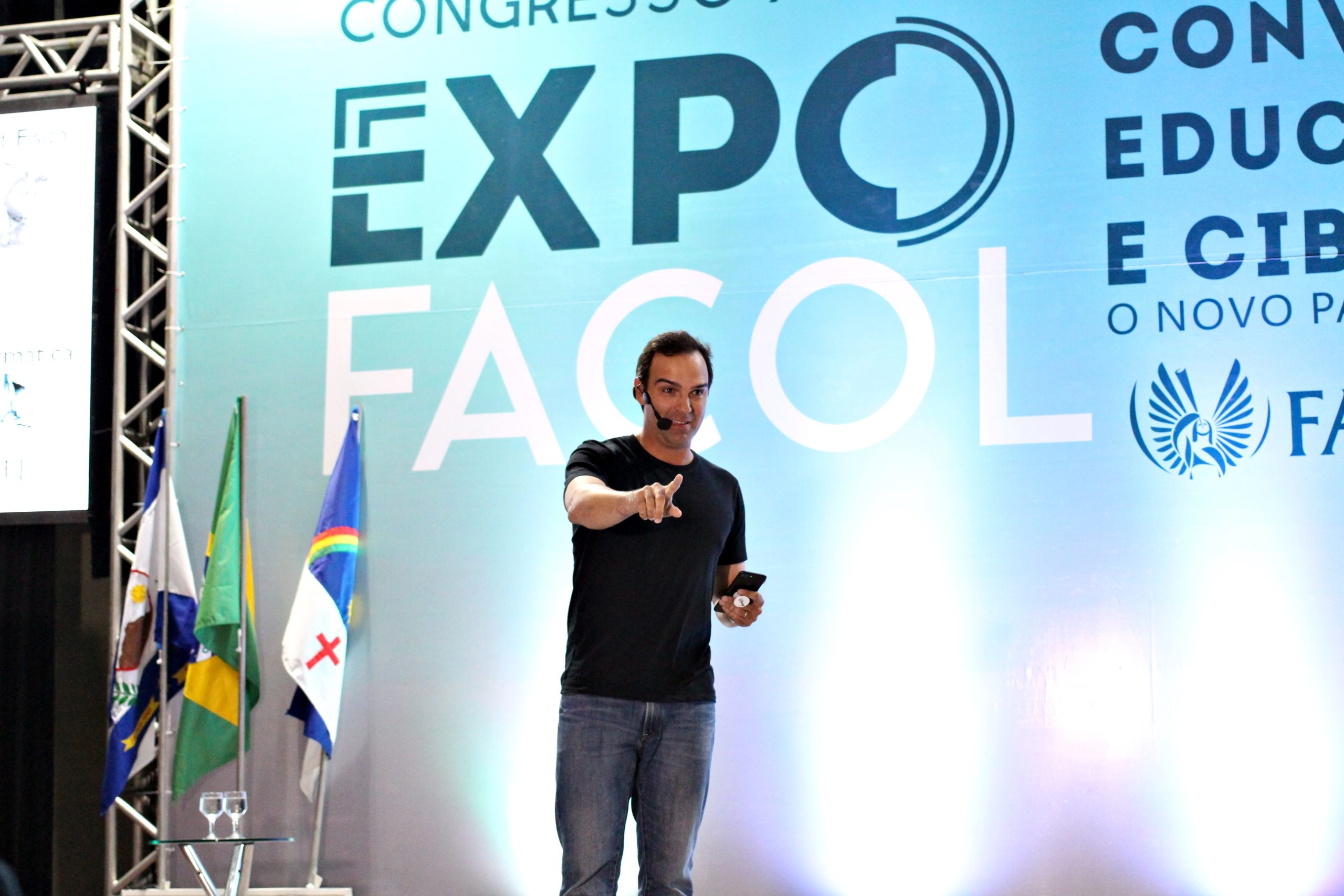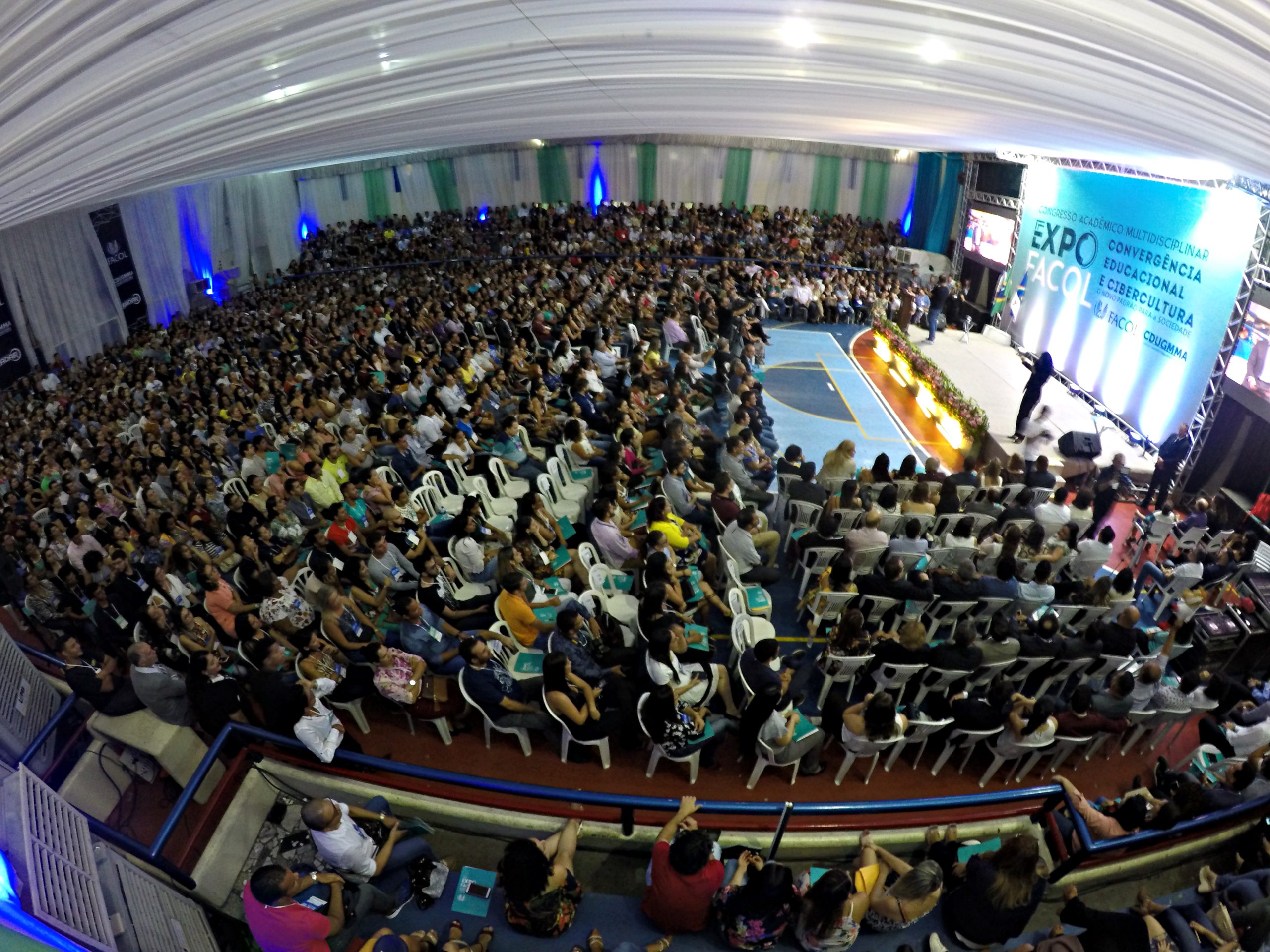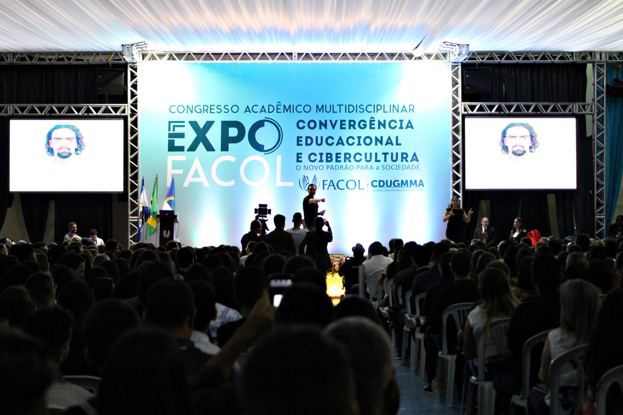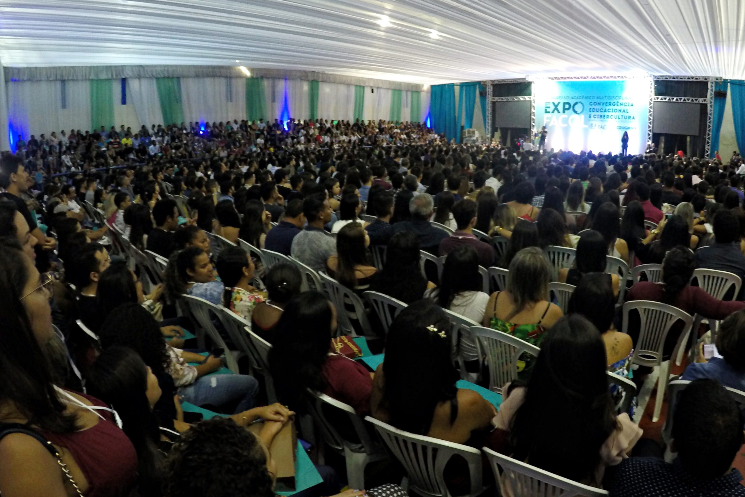 “Convergência Educacional e Cibercultura: O novo Padrão para Sociedade” é o tema da edição da ExpoFACOL deste ano. A palestra de abertura, com Tadeu Schmidt, abordou a trajetória de sucesso do jornalista, que conseguiu atingir seus objetivos, baseando suas atitudes em três palavras que traduzem sua carreira: Coragem, Dedicação e Criatividade.