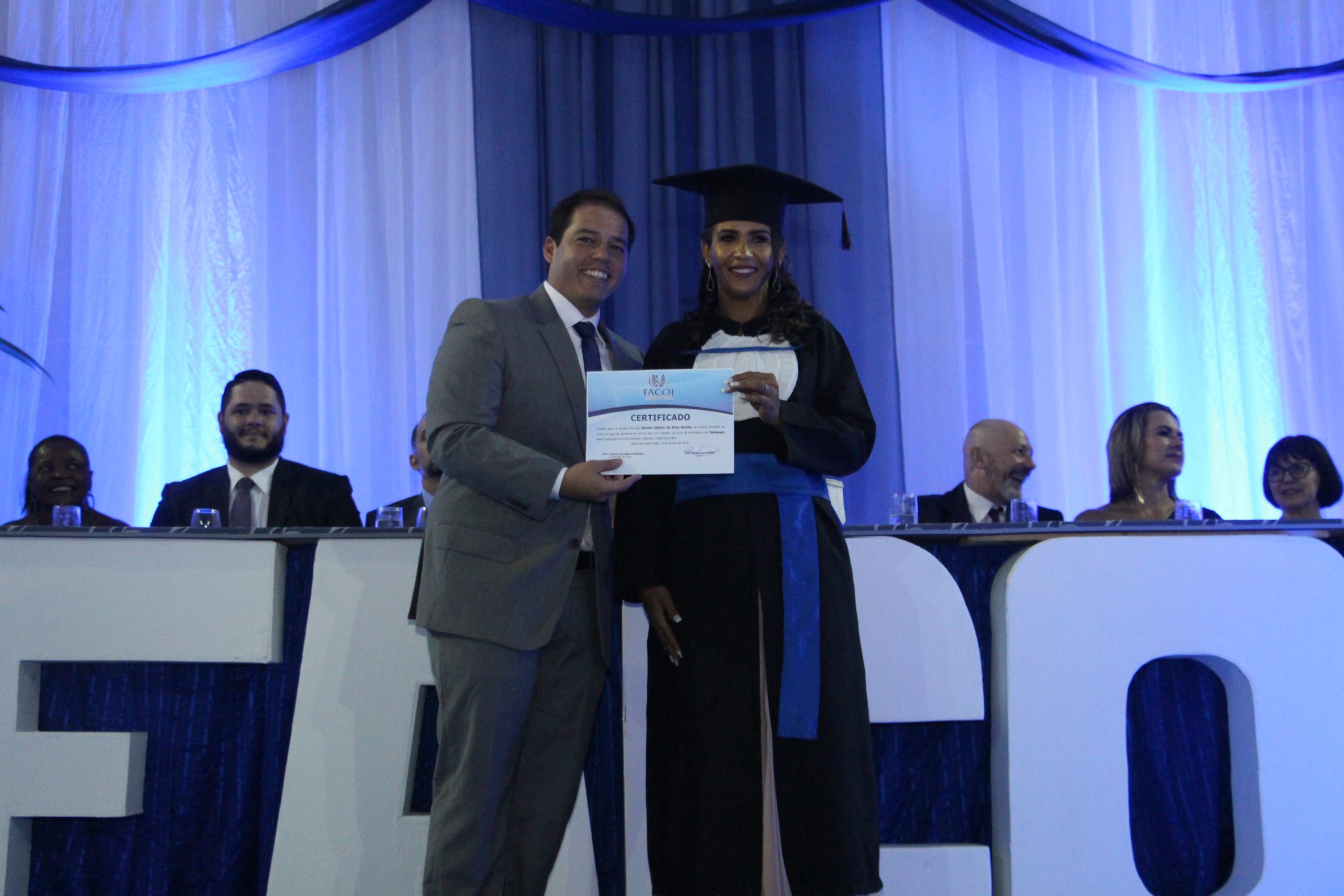 A colação de grau dos cursos de Pedagogia, Logística e Gastronomia 2018.2 ocorreu na noite desta terça-feira (15), no Ginásio de Esportes Geraldo Lima, no campus da FACOL.