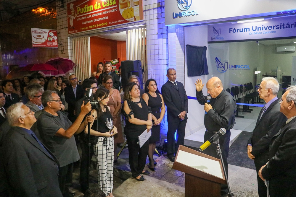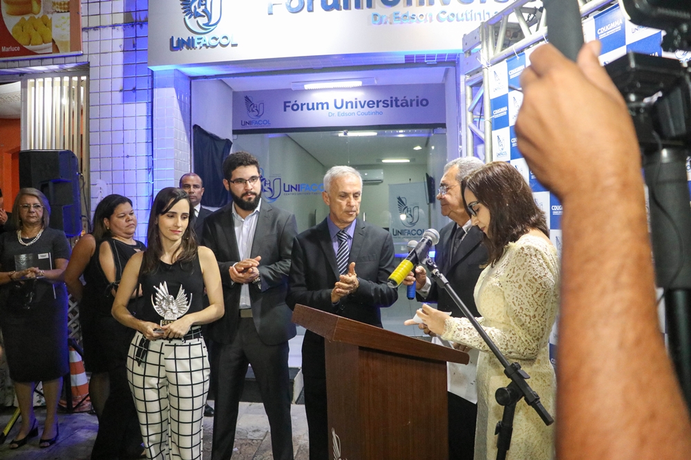 Em ato solene, a UNIFACOL – Centro Universitário Facol inaugurou, na noite desta quinta-feira (22), o Fórum Universitário Dr. Edson Coutinho. Na unidade irão funcionar a Câmara Privada de Conciliação e Mediação, o PROCON UNIFACOL e a Defensoria Universitária.