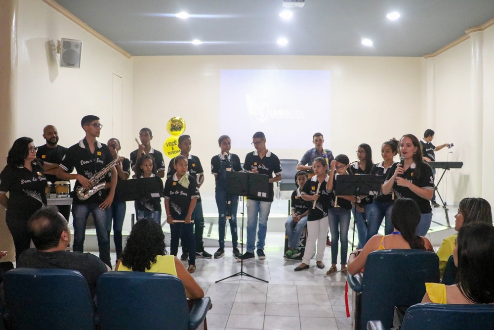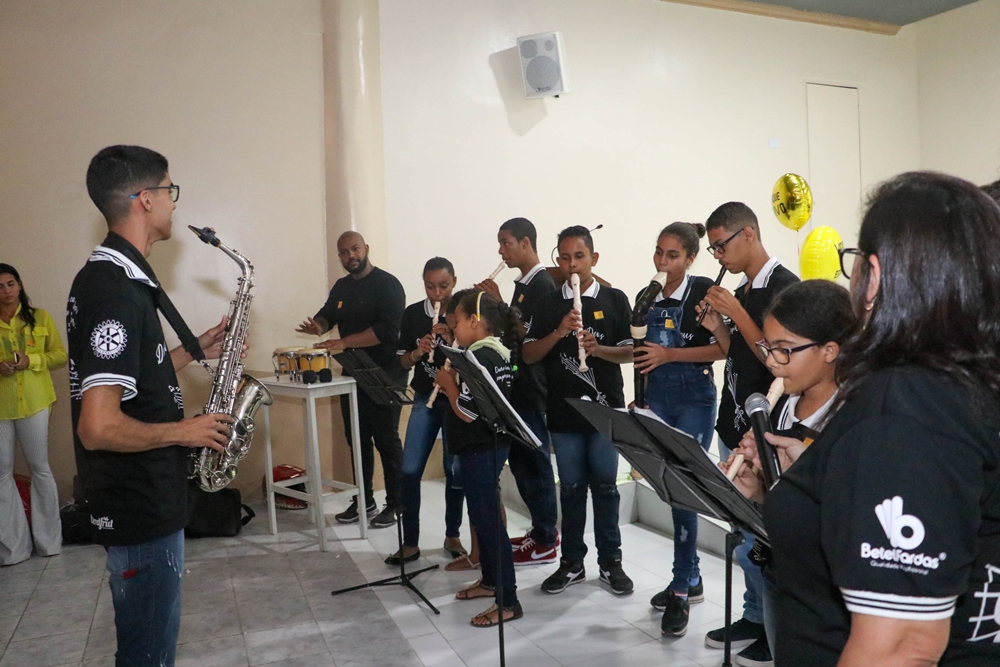 O evento foi iniciado com a apresentação do projeto social Dom de Deus, que através da música reúne crianças e adolescentes da comunidade do Cajueiro, área urbana de Vitória de Santo Antão.