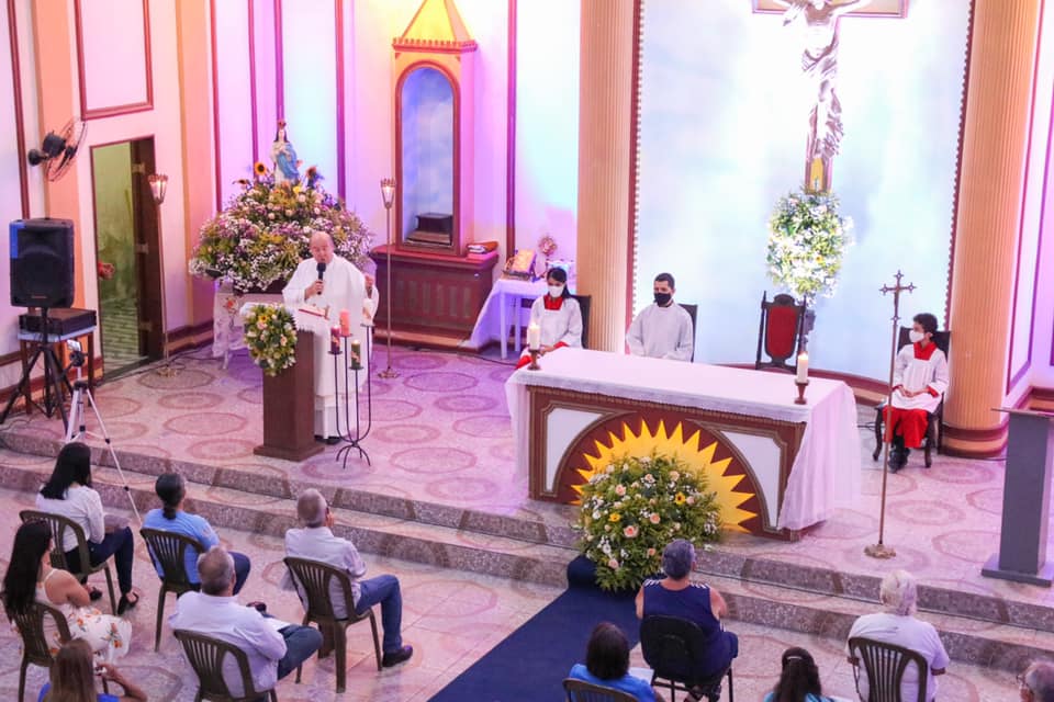 A missa de encerramento, nesta terça-feira (8), foi presidida pelo padre Héctor Ruiz, sendo seguida com a Benção do Santíssimo e procissão motorizada com a imagem da padroeira, pelas ruas do bairro Universitário, Matriz, Centro e Livramento.